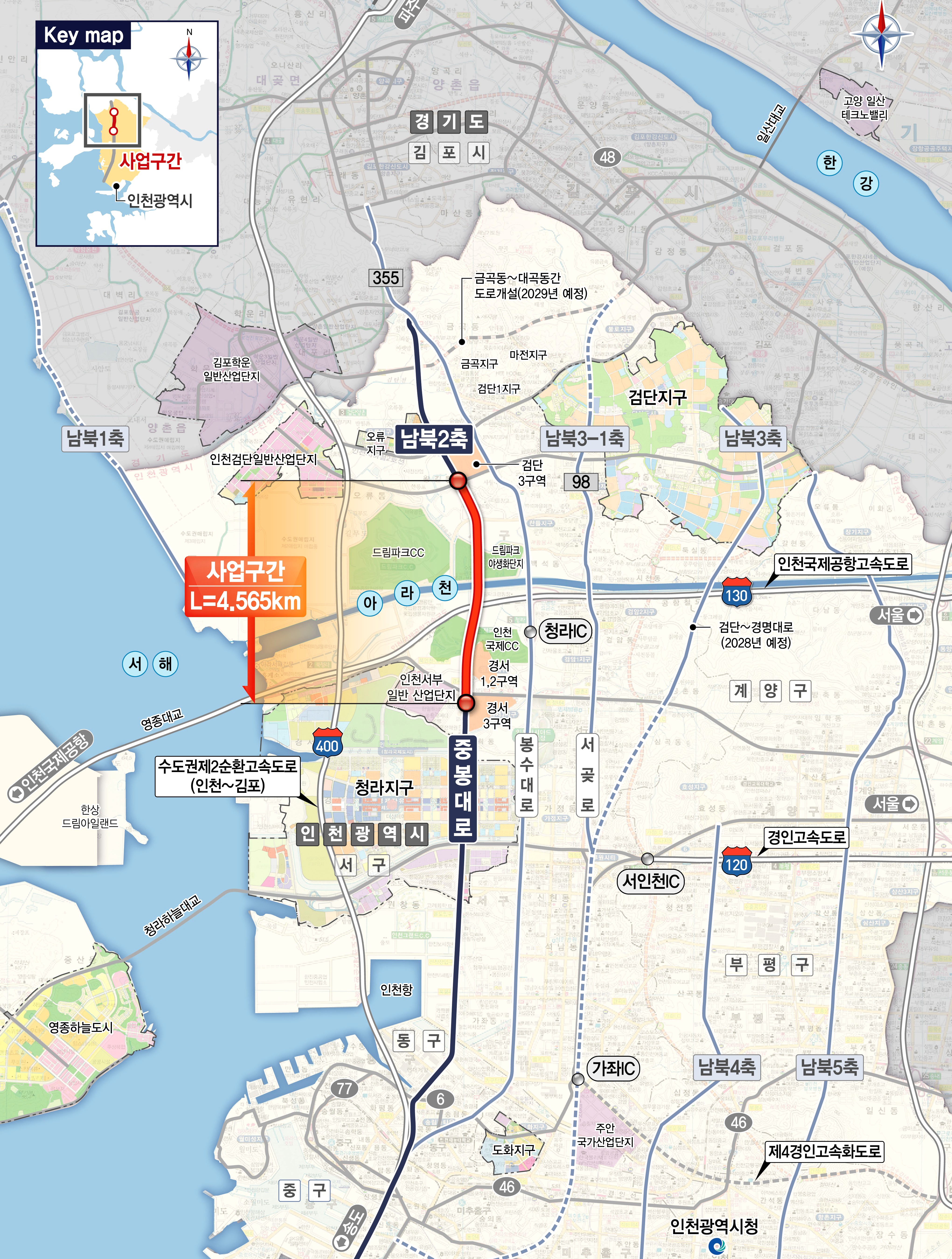 본 사업은 인천시가 서부권 핵심 간선도로망 구축을 위해 추진 중인 사업으로, 북부권역 지속 개발에 따른 지역의 교통난 해소를 목표로 하고 있다.